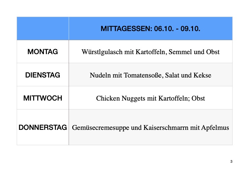 Der Elternbeitrag für das angebotene Mittagessen beträgt: