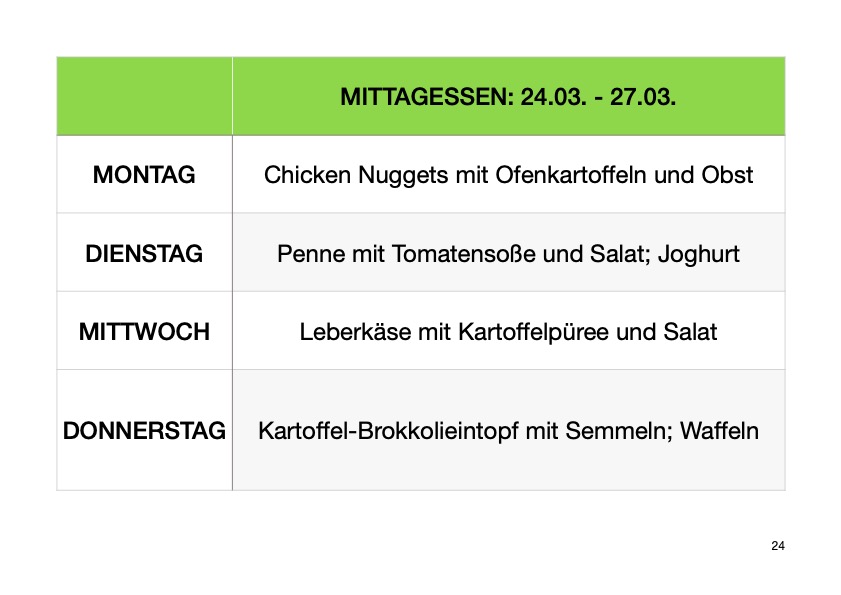 Der Elternbeitrag für das angebotene Mittagessen beträgt: